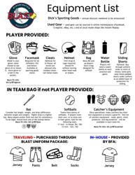 BFA will provide the following for the players: